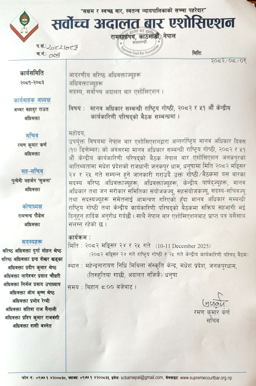 मानव अधिकार सम्बन्धी राष्ट्रिय गोष्ठी, २०८२ र ५१ औं केन्द्रीय कार्यकारिणी परिषद्को बैठक सम्बन्धमा