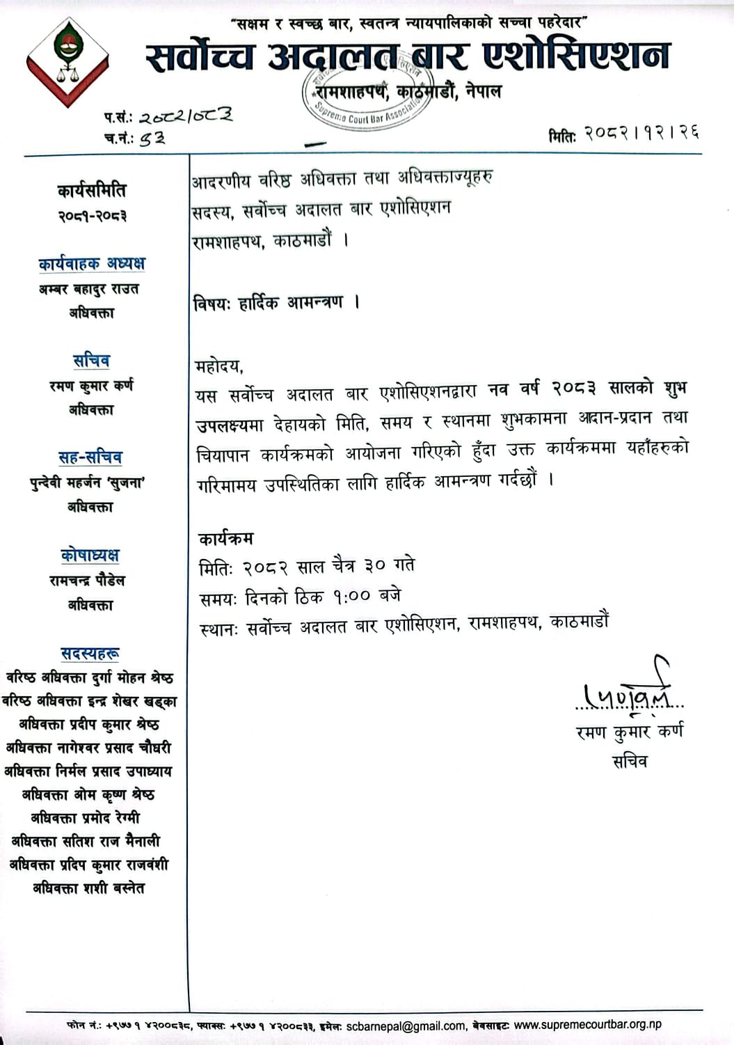 शुभकामना आदान-प्रदान तथा चियापान कार्यक्रम सम्बन्धमा (मितिः २०८२.१२.२६ गते)